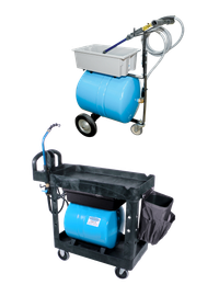 • Rubbermaid Cart with the 11 gallon tank mounted on the lower level of the cart(38”L x 17”W x 38”H)